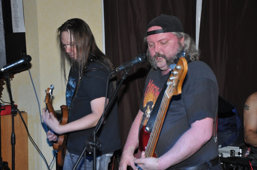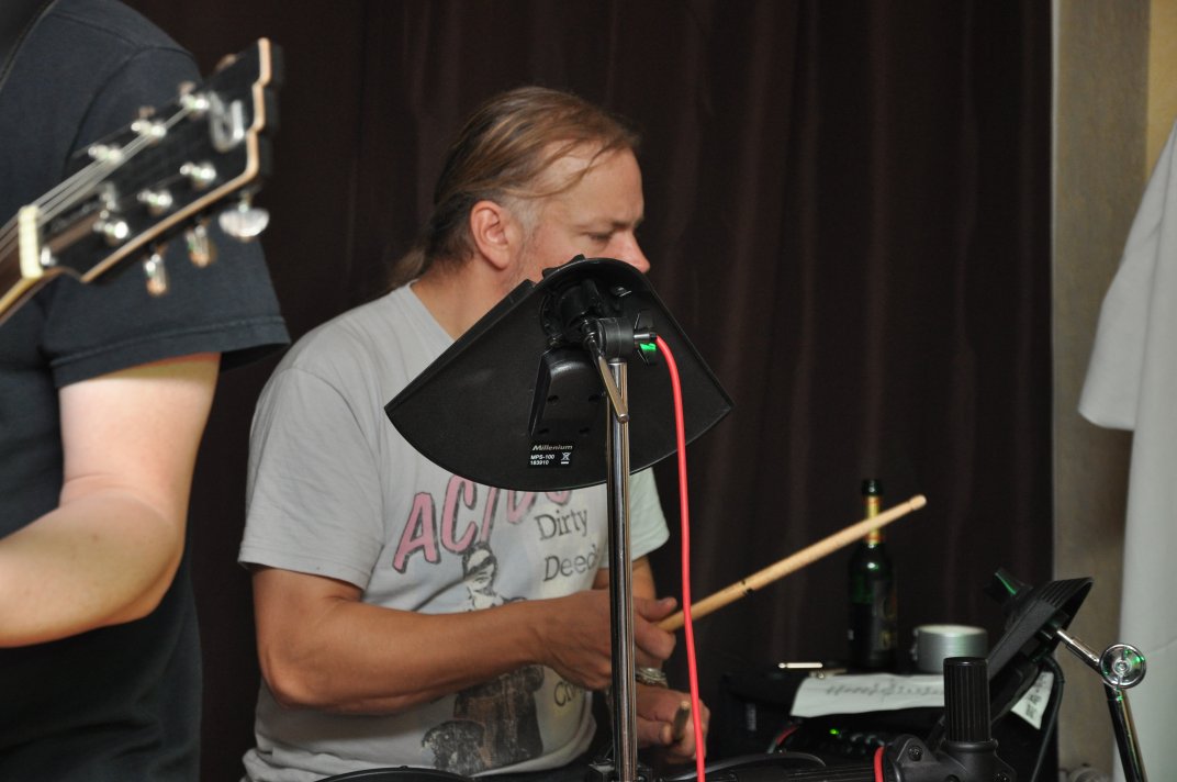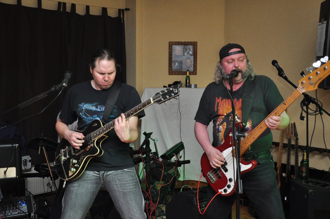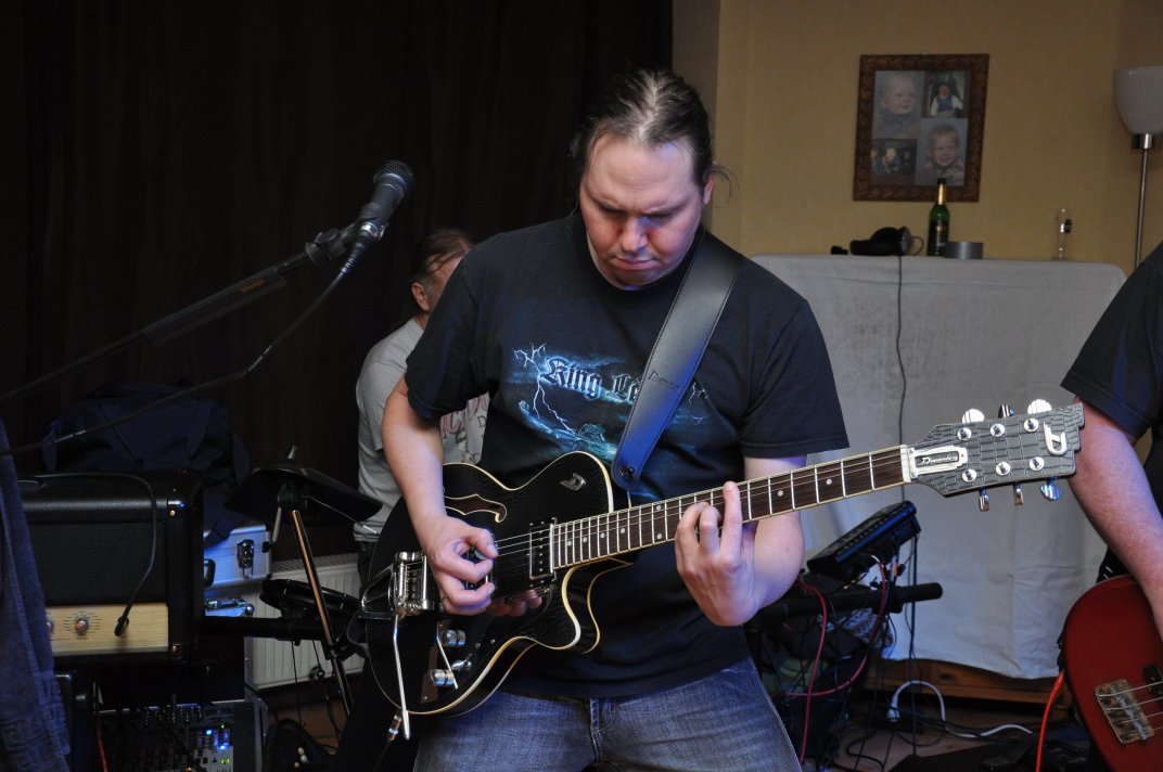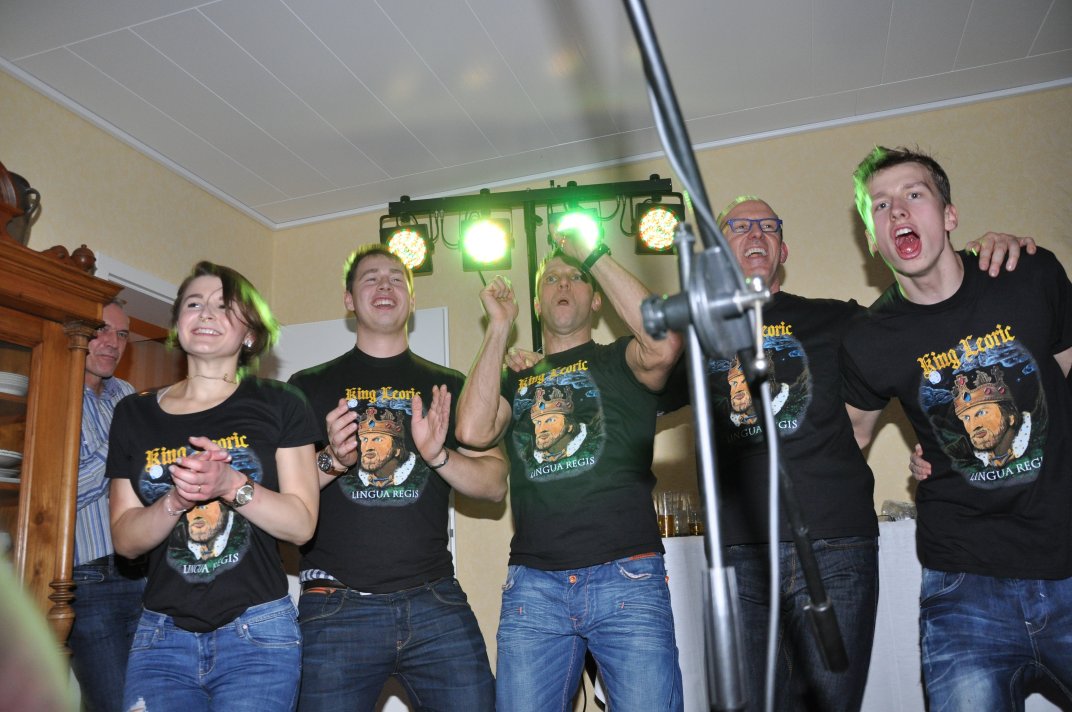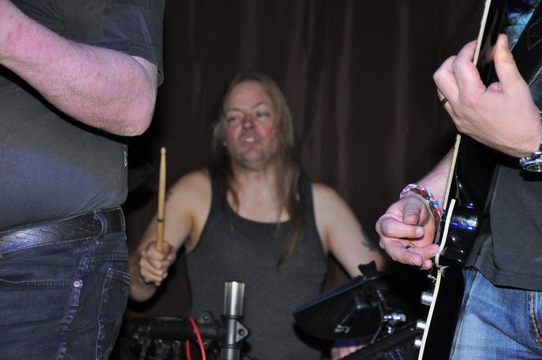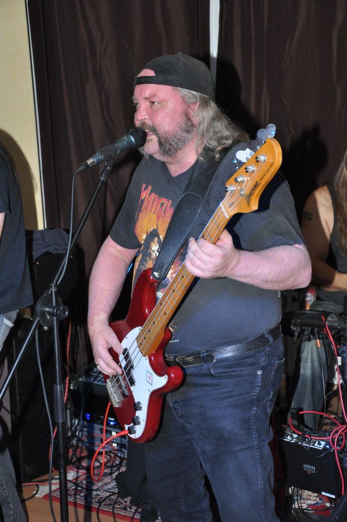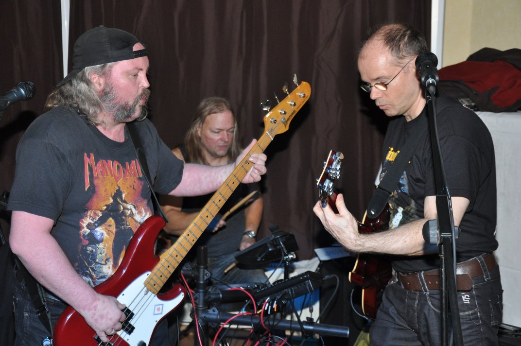 14.11.2014, Beerdrinkers and Hellraisers Wasbüttel "Überraschungsparty"... Wer hat noch nicht von diesem Brauch gehört, ein Geburtstagskind damit zu überraschen, daß, wenn es nach Hause kommt, all seine Freunde bei ihm zu Haus auf der Matte stehen, feiern wollen bis der Arzt kommt, und auch noch selbstständig für Speis und Trank gesorgt haben? Dieser Brauch ist so schön, wie er irreal ist, da man hierzu ne Menge zu organisieren hat. Wenn man es das allerdings gut hinbekommt, dann ist die Überraschung natürlich um so schöner. Solch eine Überraschungsparty sollten wir hier in Wasbüttel bespielen, einen 50.Geburtstag, an dem man das Wort "Fünfzig" zwar gar nicht erst in den Mund nehmen sollte, allerdings niemand genau wußte, warum eigentlich nicht... :-) Entsprechend war das Motto, welches auch auf den eigens hierzu verschönerten "Lingua Regis" Shirts prangte dann auch: "No fear for fifty"... Es war halt alles ein wenig heimeliger auf diesem Gig. Alles sehr privat, und irgendwie kamen wir uns alle wie kleine Verschwörer vor, die hinter vorgehaltener Hand in einem fort heimlich vorfreudig kicherten. Micha, einer der besten Freunde des Geburtstagskindes Rainer und einer der Hauptorganisatoren der Fete, brachte es auf den Punkt: "Ich freu mich, wie´n Schnitzel...!". Gegen 16.00h rückten wir mit unserem Geraffel an, um uns im Wohnzimmer des Jubilanten erstmal breit zu machen. Der Sound stand dann gegen 17.30h, selbstverständlich gingen dabei wieder diverse Kabel kaputt, die wir in die magische Kabelkiste warfen, aus der wir als Ersatz Kabel fischten, die das letzte mal kaputtgegangen und in der Kabelkiste gelandet waren, aber nun wieder funktionierten. Von selbst... :-) Magische Kabelkiste eben... :-) Um 18.15h war es dann soweit, der Geburtstags-Rainer rollte auf seinen Hof, den Feierwütigen direkt in die Arme. Er war von seiner Kollegin tatsächlich bis spät am Abend mit irgendwelchen Terminlichkeiten hingehalten worden, und es hätte uns nicht verwundert, wäre er mit ner richtigen Kack- Laune aus seinem Auto geklettert. Wer bleibt Freitag Abend schon gern länger, als er muß? Doch bevor Rainer noch irgendwas sagen konnte, legten sein Sohn, seine Freunde Micha und Uwe, sowie dessen Sohn im Hof schon mit einem einstudierten "Die for Metal" los. Quasi "die andere Band" des Abends. Cool. Damit verfiel Rainer erstmalig in den Zustand der Sprach- losigkeit vor lauter Freude. Nach dem kurzen Intermezzo der Band ging der Feiertroß geschlossen auf Rainer los, was ihn immer wieder der Sprachlosigkeit auslieferte. Der erste Teil der Überraschung war also schonmal geglückt. Nun kamen wir an die Reihe. Während der "Hof-Band" hatten wir mucksmäuschenstill im Wohnzimmer verharrt, auf unseren Einsatz wartend. Jetzt ging ich raus, mit dem Bass über der Schulter und einem Shirt für Rainer in der Hand. Man muß wissen, daß Rainer unsere Truppe schon einige male live gesehen hat, uns also kennt. Daher überblickte er schnell die Situation, und fandt sogar die Sprache wieder, als er mich erblickte: "Ach Du Scheisse...!!!", klang es aus seinem Mund, und selten habe ich dieses böse Wort mit so freudigem Unterton gehört... :-) Nun bat ich den Hausherren, mir in sein Wohnzimmer zu folgen, und mit seinem Eintritt brach unser Reigen bunter Metal-Melodien über ihn und seine ihm folgenden Gäste herein. Jetzt kannten Freude und Erstaunen keine Grenzen mehr. In zwar gemäßigter, aber immer noch dröhntauglicher Lautstärke walzten wir unseren Set durch Rainers Wohnzimmer. "Wir", das waren an diesem Abend Nico, Accy, Jensi UND Patsche, der zwar eigentlich 4 Wochen vorher in Eschwege seine letzte Show gespielt hatte, aber heute trotzdem nochmal mitmischen wollte, da er zufällig noch in Deutschland weilte. Nur zum dritten Track "Guardians of the king" gesellte sich statt Patsche der Gitarrist der "Hof-Band" Uwe zu uns, um uns an der Rhythmus-Klampfe zu begleiten. Uwe ist Rainers Freund und Nachbar, und für Rainer war es die reinste Freude, Uwe endlich mal in einer Band zocken zu sehen. Uwe ist nämlich ein wirklich guter Gitarrist, der sich aber nicht durchringen kann, einer Band beizutreten... Danach folgten knapp anderthalb Stunden Programm von und mit uns, wobei das Publikum teilweise schon recht steil ging. Und das war nicht unbedingt zu erwarten gewesen. Trugen zwar fast alle Anwesenden jene modifizierten "Lingua" Shirts, so waren die meisten musikalisch mit Sicherheit nicht im Old School Heavy Metal beheimatet... Und so waren es denn zum Ende wieder viele, die zugaben, "mit Metal nichts zu tun zu haben", uns aber "voll geil" zu finden... Freu... Micha freute sich mittlerweile schon wie ein XXL-Schnitzel, und die ganze Bude bebte in unserem Sound. Alles sprang, hüpfte, gröhlte... - und als wir zum Ende dann auch noch den alten Flippers-Gassenhauer "Die rote Sonne von Barbados" intonierten, begannen sogar einige, zu tanzen... Job gemacht, würde ich sagen. Nach unseren anderthalb Stunden waren wir fix und alle. Wir hatten eine super Show gegeben, hatten noch einmal Patsche an unserer Seite, und hatten nun nur noch Durst. Welch eine Feier! Wir blieben nun noch als Ehrengäste auf Rainers Party, und tranken manch guten Schoppen mit unseren neuen Freunden. Gegen 3.00h nachts ging es dann ins Hotel. Wasbüttel Du hast gerockt! Und Rainer: Du hast echt coole Freunde! Prost! PS: Spät, gegen 1:00h, als Patsche schon längst weg war, bestand Rainer darauf, daß Accy Rainers Klampfe noch mal live checkte. Also hobbelten wir mit voller Runkel nochmal schön auf und dröhnten volle Pulle noch einmal 4 Tracks in die Nacht... DAS war echter Rock´n´Roll, auch wenn es am nächsten Tag mündliche Verweise aus der direkten Nachbarschaft gab. Na, wenigstens waren die Schutzgeister nicht da... Rainers Klampfe ist jedenfalls spitze... :-) |